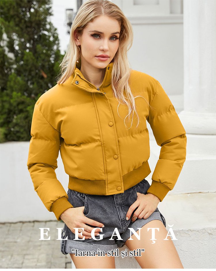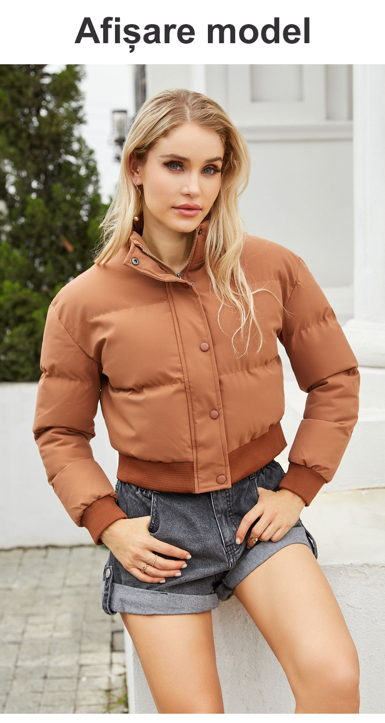 Palton scurt de puf alb de gâscă cu guler înalt